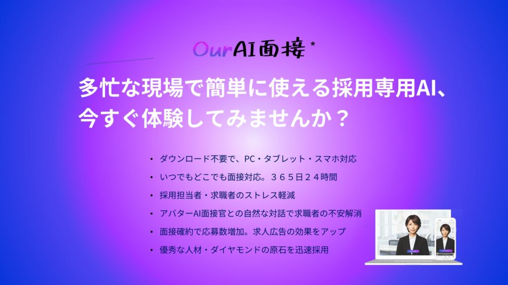 忙しい採用現場の救世主:Our AI面接* | 営業・面接業務の現場で簡単に使えるAIでサポート